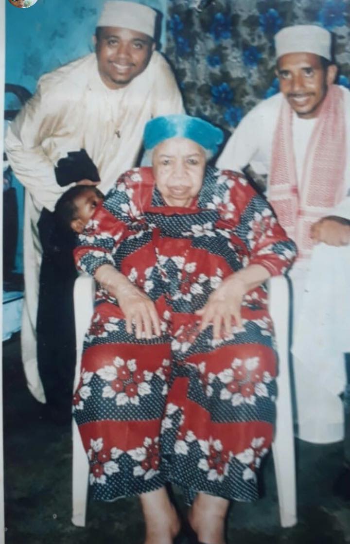 Assise : Bweni Fatima binti Said Halid ibn Abdallah-sidi ibn Hassan ibn Ahmad AL SHEIKH ABUBAKR IBN SALIM AL BAALAWI, avec ses neveux ( à droite Halid ibn Nabhane et à gauche Abdallah-Charif ibn Aliloifa)