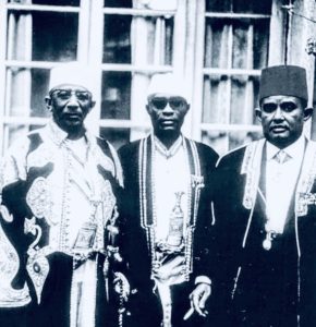 Période Coloniale De gauche à droite : Said Mohammed ibn Sheikh Abdallah ibn Mansoib AL SHEIKH ABUBAKR IBN SALIM AL BAALAWI, Affane ibn Mohammed, Salim ibn Issa